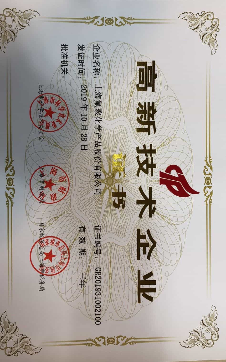 上海氟聚化學(xué)產(chǎn)品股份有限公司